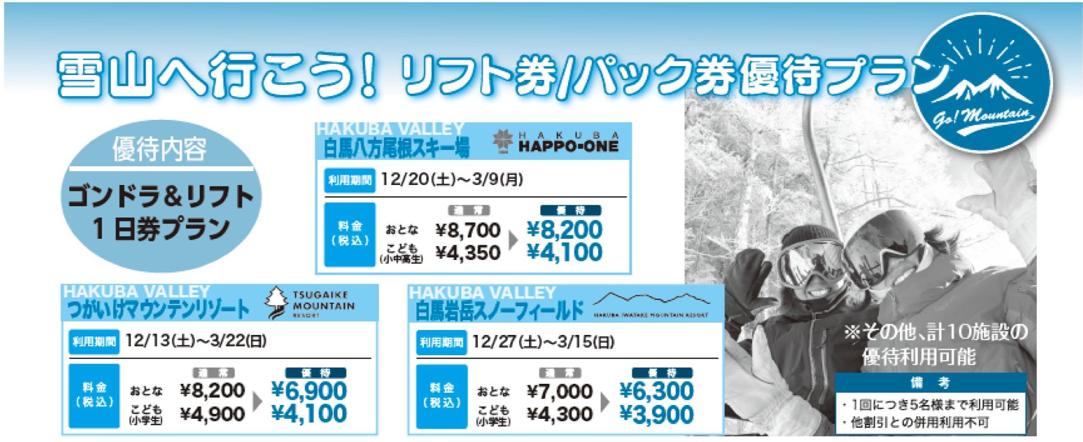 ● 日本スキー場開発 雪山へ行こう!リフト券/パック券優待のご案内 (会員限定)