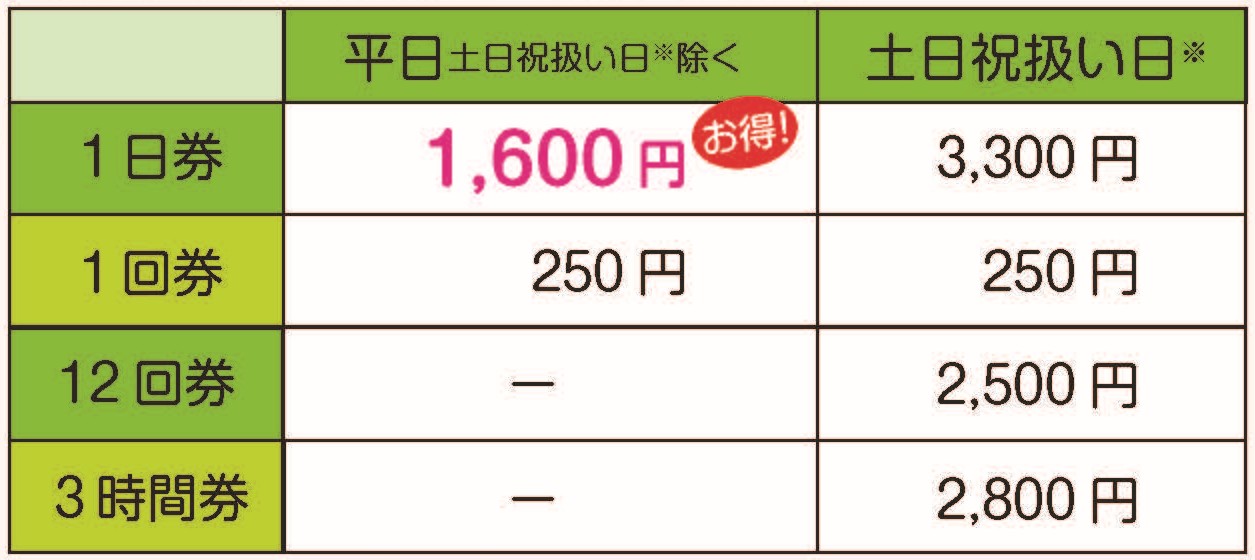 ・リフト料金は別途要。通常営業日の16:30まで。ナイター営業の19:30まで入園可能です。